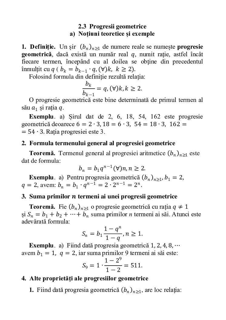 Fiecare paragraf al fiecărui capitol începe cu Noțiuni teoretice și exemple.